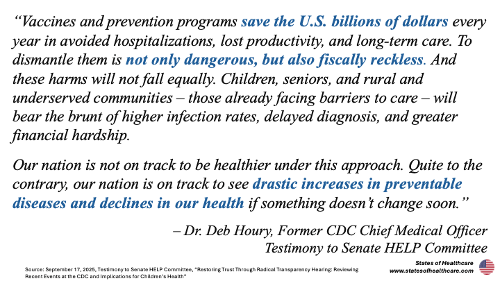 On September 17th former CDC Chief Medical Officer Deb Houry joined former CDC Director Monarez in testifying before the Senate Committee on Health, Education, Labor and Pensions for almost three hours of sometimes heated interrogation.